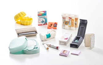We offer two types of sustainable molded products under the brand “ecosense molding”: “Pulp Series” is made mainly from pulp and has the texture of paper. On the other hand, “Biocomposite Series” has functionality and durability equivalent to plastics while made mainly from plant-based materials. These products can be used in a wide range of applications, for example packaging (trays, outer boxes, and packing materials) for cosmetics, pharmaceuticals, medical devices, consumer electronics, industrial equipment, and food.