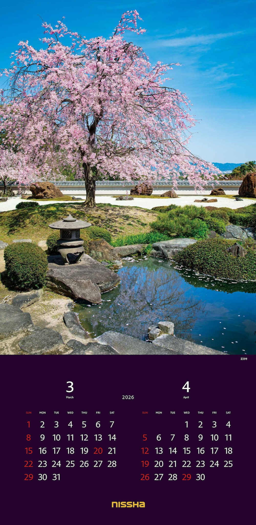 穏やかな庭園と、それを見守る紅枝垂桜の存在感を一枚に収めました。